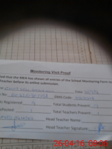 | Attendance Register | Head Teacher | MEA with School | Visit Proof |