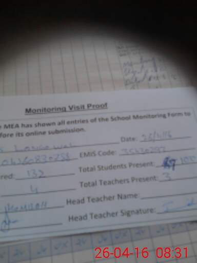 | Attendance Register | Head Teacher | MEA with School | Visit Proof |
