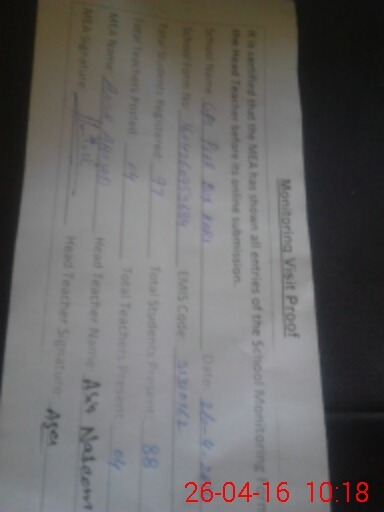 | Certified that this School was Inspected by the Undersigned MEA/DMO Today and the Information Stated Above is as Per Record. | |||||