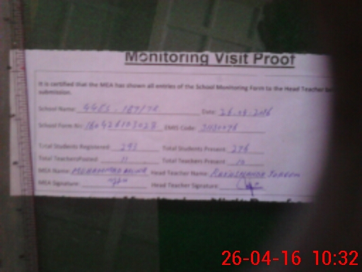| Attendance Register | Head Teacher | MEA with School | Visit Proof |