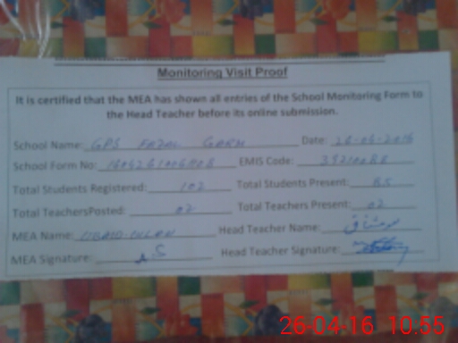 | EMIS Code: 39210088 | Name of School: GES FAZAL GARH P.O BOYLE GANJ | |||