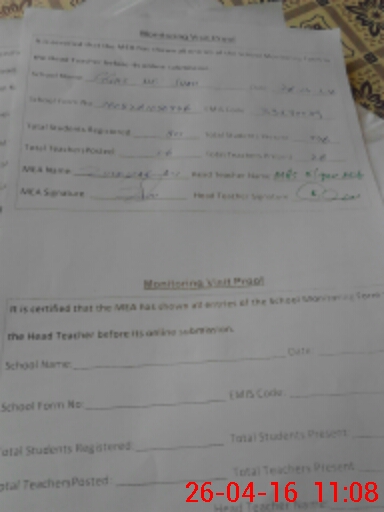 | Attendance Register | Head Teacher | MEA with School | Visit Proof |