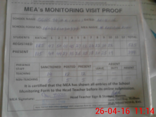 | Certified that this School was Inspected by the Undersigned MEA/DMO Today and the Information Stated Above is as Per Record. | |||||