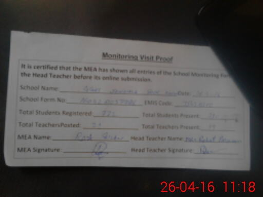 | Attendance Register | Head Teacher | MEA with School | Visit Proof |