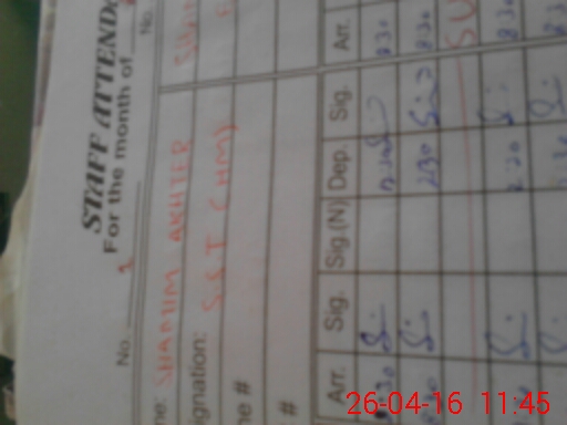 | Monitoring Date: 26-04-2016 | Start Time: 26-04-2016 11:06 AM | End Time: 26-04-2016 11:45 AM | Name of MEA: AH**** NA**** (r**** | |
