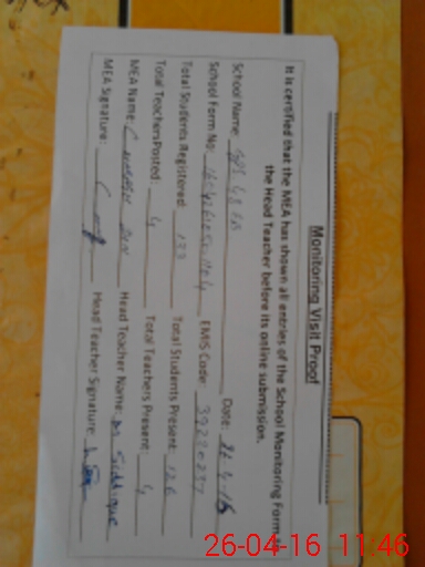 | Certified that this School was Inspected by the Undersigned MEA/DMO Today and the Information Stated Above is as Per Record. | |||||