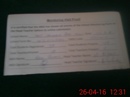 | Certified that this School was Inspected by the Undersigned MEA/DMO Today and the Information Stated Above is as Per Record. | |||||