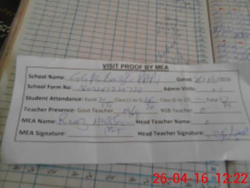 | Attendance Register | Head Teacher | MEA with School | Visit Proof |