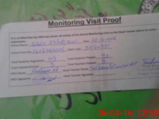 | EMIS Code: 31140331 | Name of School: GGPS 54/4R GUJAR WALI | |||