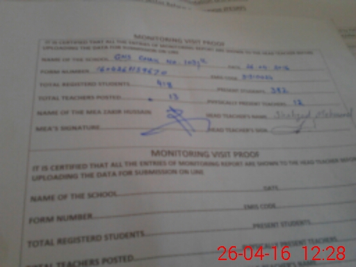 | Certified that this School was Inspected by the Undersigned MEA/DMO Today and the Information Stated Above is as Per Record. | |||||