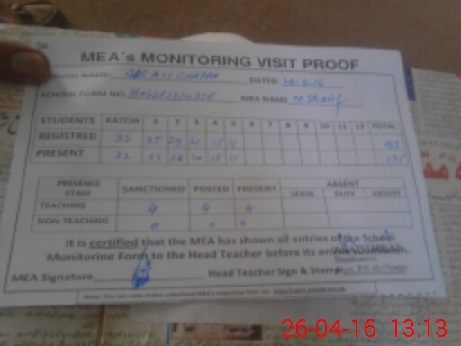 | EMIS Code: 36410261 | Name of School: GPS ALI CHAPPA, P/O 9-B/8-R, ABDUL HAKIM | |||