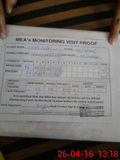 | Attendance Register | Head Teacher | MEA with School | Visit Proof |