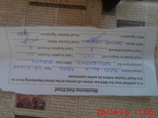 | Certified that this School was Inspected by the Undersigned MEA/DMO Today and the Information Stated Above is as Per Record. | |||||