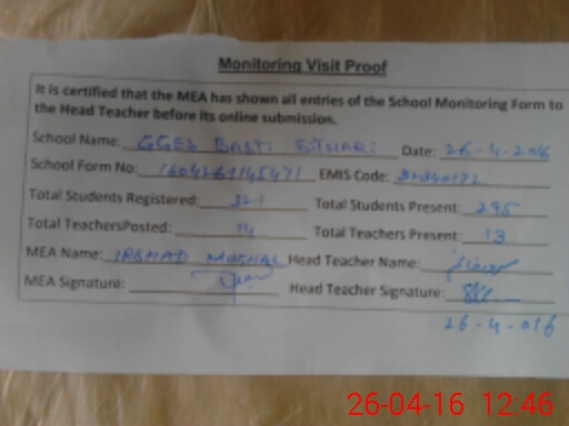 | Certified that this School was Inspected by the Undersigned MEA/DMO Today and the Information Stated Above is as Per Record. | |||||