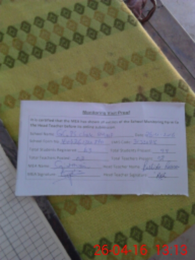 | Attendance Register | Head Teacher | MEA with School | Visit Proof |