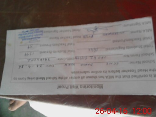 | Attendance Register | Head Teacher | MEA with School | Visit Proof |