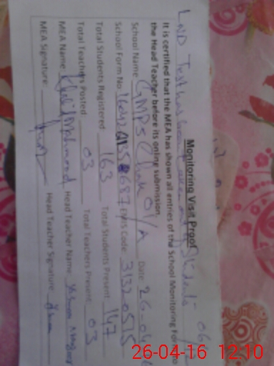 | Certified that this School was Inspected by the Undersigned MEA/DMO Today and the Information Stated Above is as Per Record. | |||||