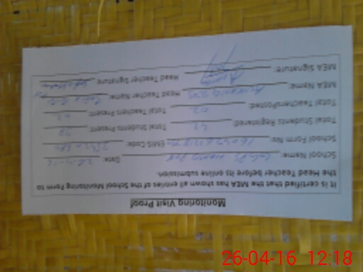 | Attendance Register | Head Teacher | MEA with School | Visit Proof |