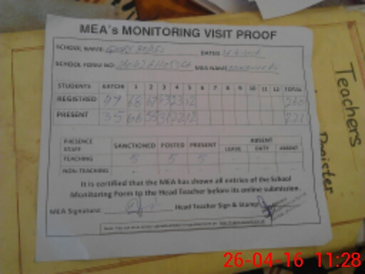 | Attendance Register | Head Teacher | MEA with School | Visit Proof |