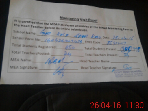 | EMIS Code: 35410013 | Name of School: GHS KALA SHAH KAKU | |||