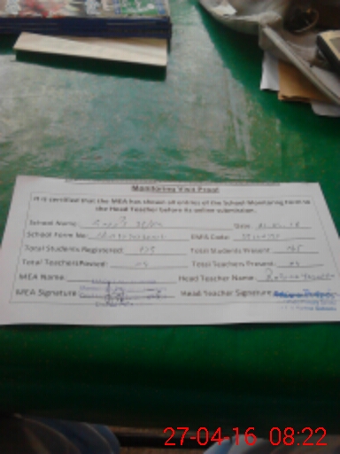 | Attendance Register | Head Teacher | MEA with School | Visit Proof |