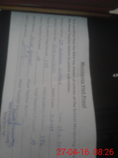 | Certified that this School was Inspected by the Undersigned MEA/DMO Today and the Information Stated Above is as Per Record. | |||||