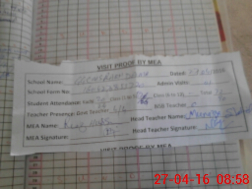 | Attendance Register | Head Teacher | MEA with School | Visit Proof |