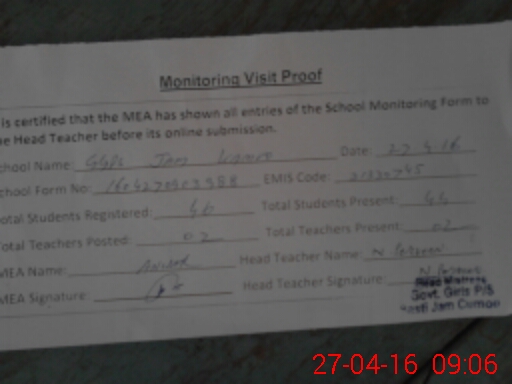 | EMIS Code: 31330745 | Name of School: GGPS BASTI JAM KAMOO | |||
