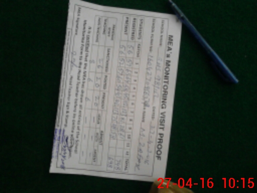 | Monitoring Date: 27-04-2016 | Start Time: 27-04-2016 09:10 AM | End Time: 27-04-2016 10:18 AM | Name of MEA: Mu**** Za**** (S**** | |