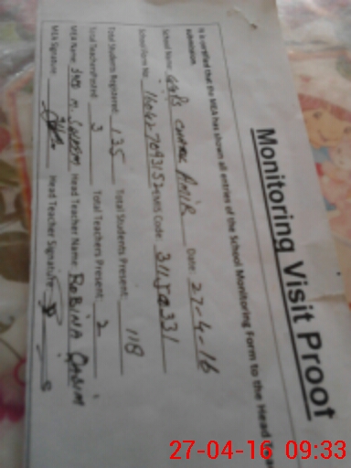 | Attendance Register | Head Teacher | MEA with School | Visit Proof |