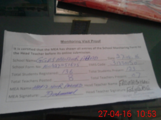 | EMIS Code: 31330150 | Name of School: GGES MANZOOR ABAD | |||