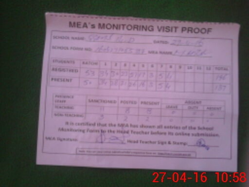 | Attendance Register | Head Teacher | MEA with School | Visit Proof |