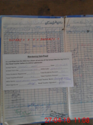 | Attendance Register | Head Teacher | MEA with School | Visit Proof |