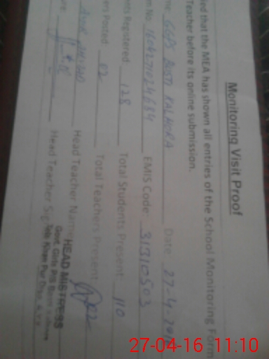 | EMIS Code: 31310503 | Name of School: GGPS KALHOORA | |||