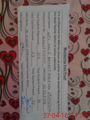 | EMIS Code: 32320116 | Name of School: GPS KALA BAGRAY WALA | |||