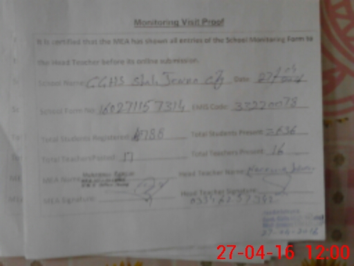 | Certified that this School was Inspected by the Undersigned MEA/DMO Today and the Information Stated Above is as Per Record. | |||||