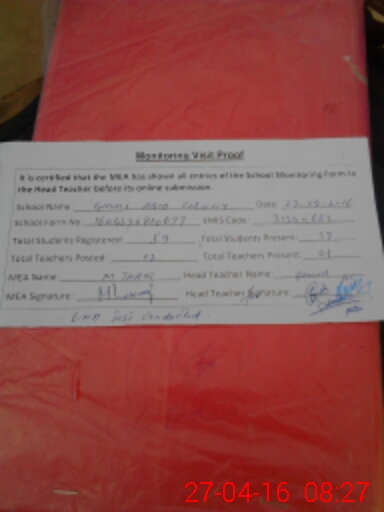 | EMIS Code: 31340682 | Name of School: GPS ABID COLONY | |||