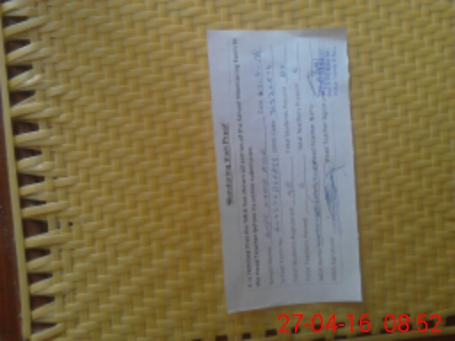 | Monitoring Date: 27-04-2016 | Start Time: 27-04-2016 07:55 AM | End Time: 27-04-2016 08:53 AM | Name of MEA: Mu**** Sa**** Ul**** Sa**** | |