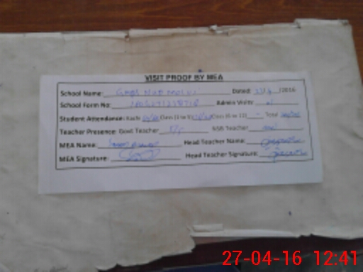 | Attendance Register | Head Teacher | MEA with School | Visit Proof |