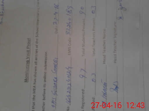 | Certified that this School was Inspected by the Undersigned MEA/DMO Today and the Information Stated Above is as Per Record. | |||||