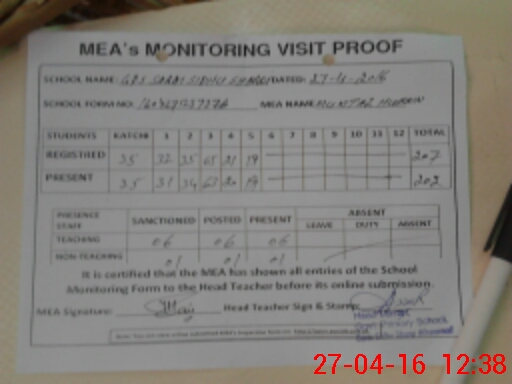 | Attendance Register | Head Teacher | MEA with School | Visit Proof |