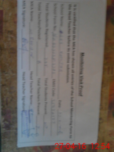| Attendance Register | Head Teacher | MEA with School | Visit Proof |