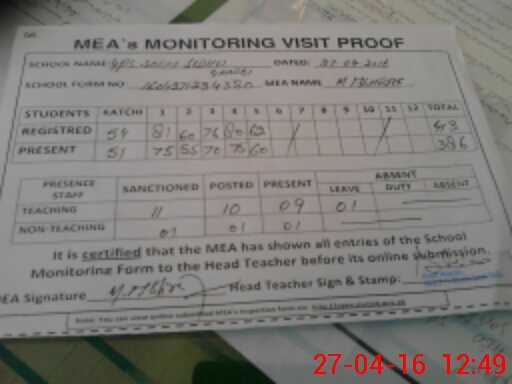| Attendance Register | Head Teacher | MEA with School | Visit Proof |