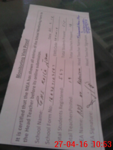 | Attendance Register | Head Teacher | MEA with School | Visit Proof |