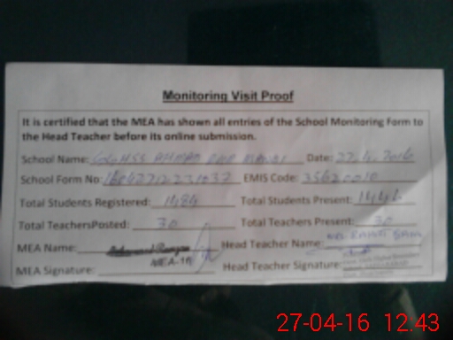 | Certified that this School was Inspected by the Undersigned MEA/DMO Today and the Information Stated Above is as Per Record. | |||||
