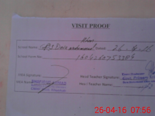 | Attendance Register | Head Teacher | MEA with School | Visit Proof |