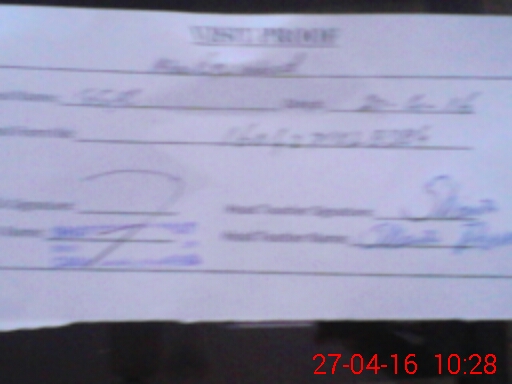 | Monitoring Date: 27-04-2016 | Start Time: 27-04-2016 09:54 AM | End Time: 27-04-2016 10:39 AM | Name of MEA: SH**** AH**** (R**** | |