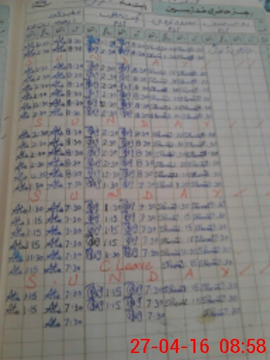 | CNIC | Full Name | Designation | R/C | Absence During Last Calender Month |