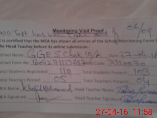 | EMIS Code: 31320070 | Name of School: GGES CHAK NO. 10/A | |||