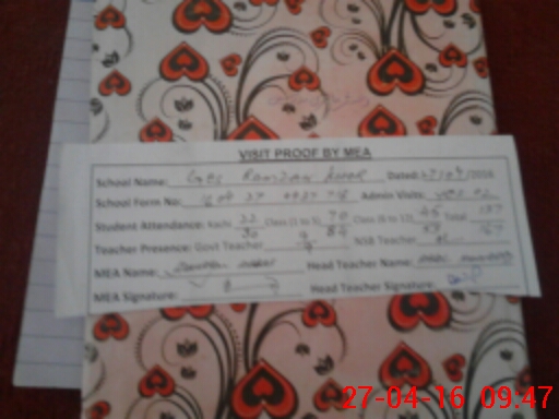 | Attendance Register | Head Teacher | MEA with School | Visit Proof |